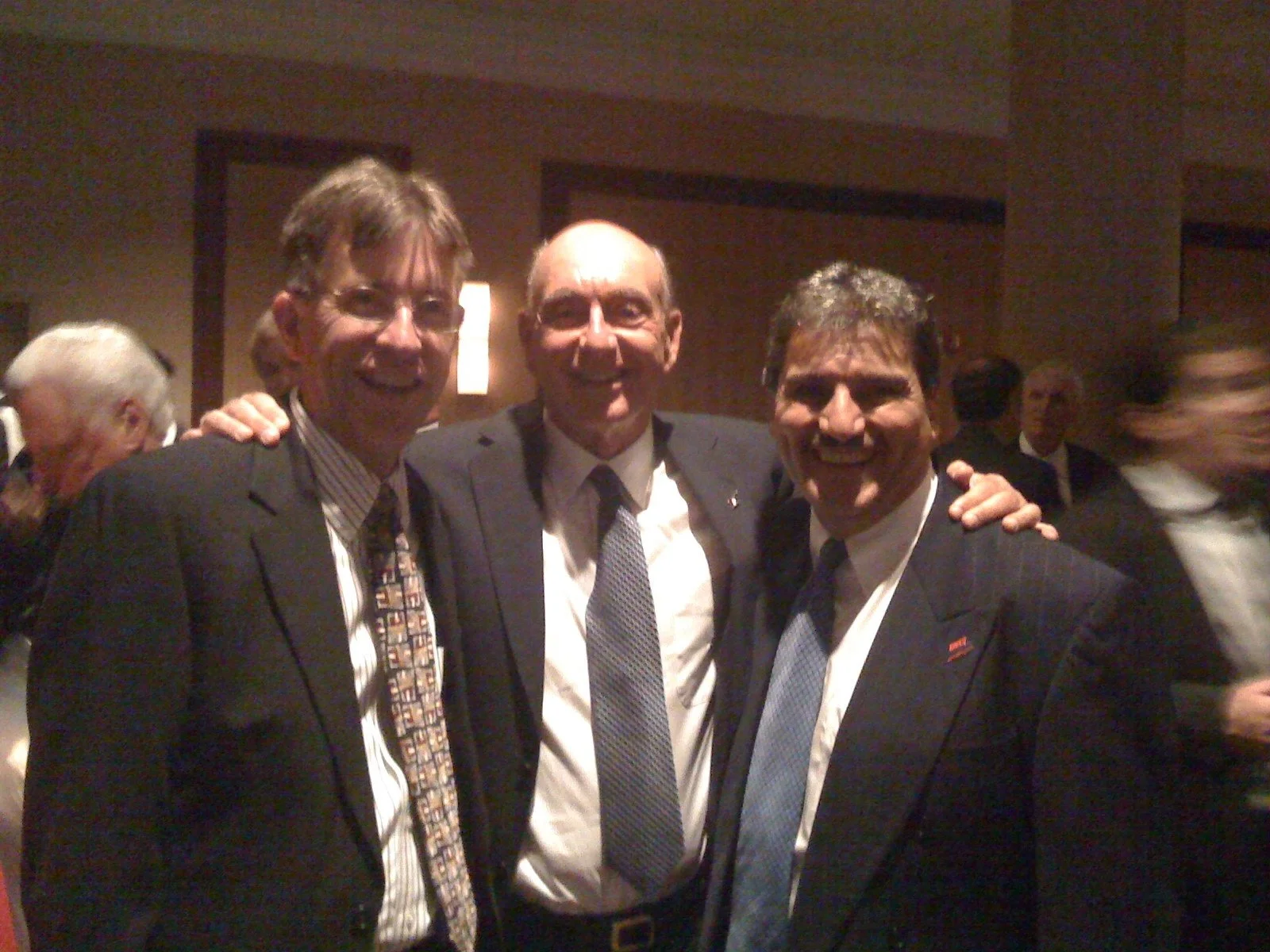 Odjakjian (right) with ESPN Broadcaster Dick Vitale (center) and ESPN Vice President of Communications Mike Soltys (left) at Vitale’s induction into the Naismith Basketball Hall of Fame in 2008 - courtesy of Tom Odjakjian