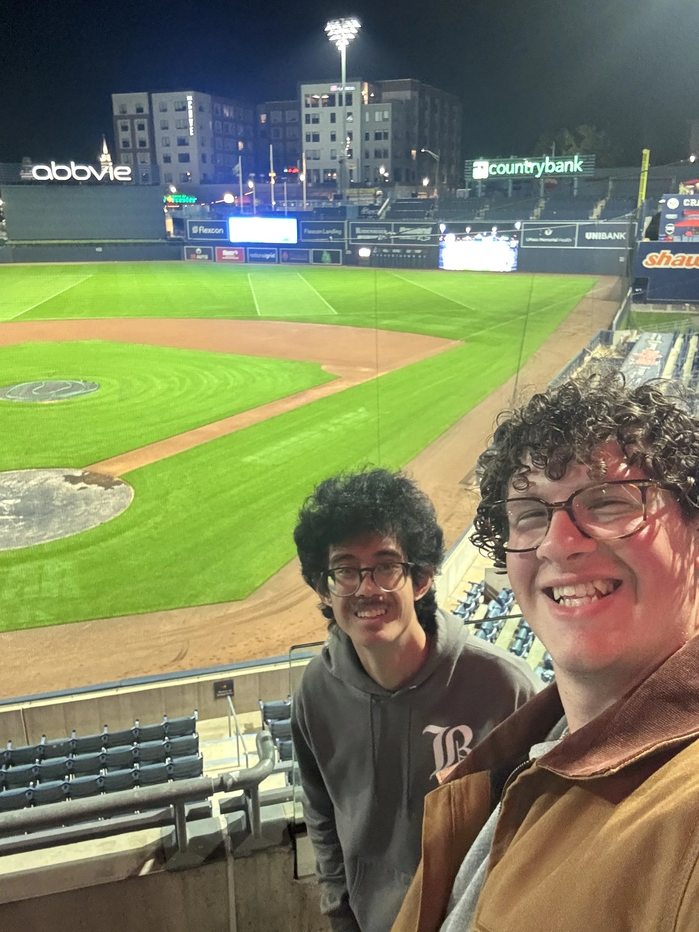 Daniel O’Toole (right) and a friend (left) at Polar Park, home of the Triple-A Worchester Red Sox. WooSox games are only accessible by NESN’s streaming platform, NESN360 - courtesy of Daniel O’Toole